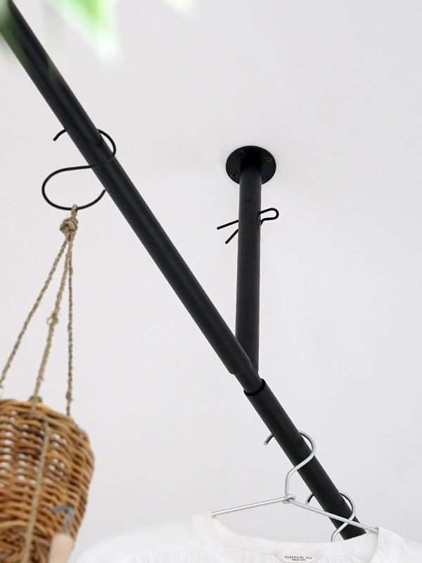 生活感が出てしまう洗濯物の室内干しですが、アイアンのパイプハンガーであればインテリアを邪魔せず設置ができます。また、アウターなどを掛けるのに使用したり、プランターやモビールを吊り下げるディスプレイアイテムとしてもおすすめです。
