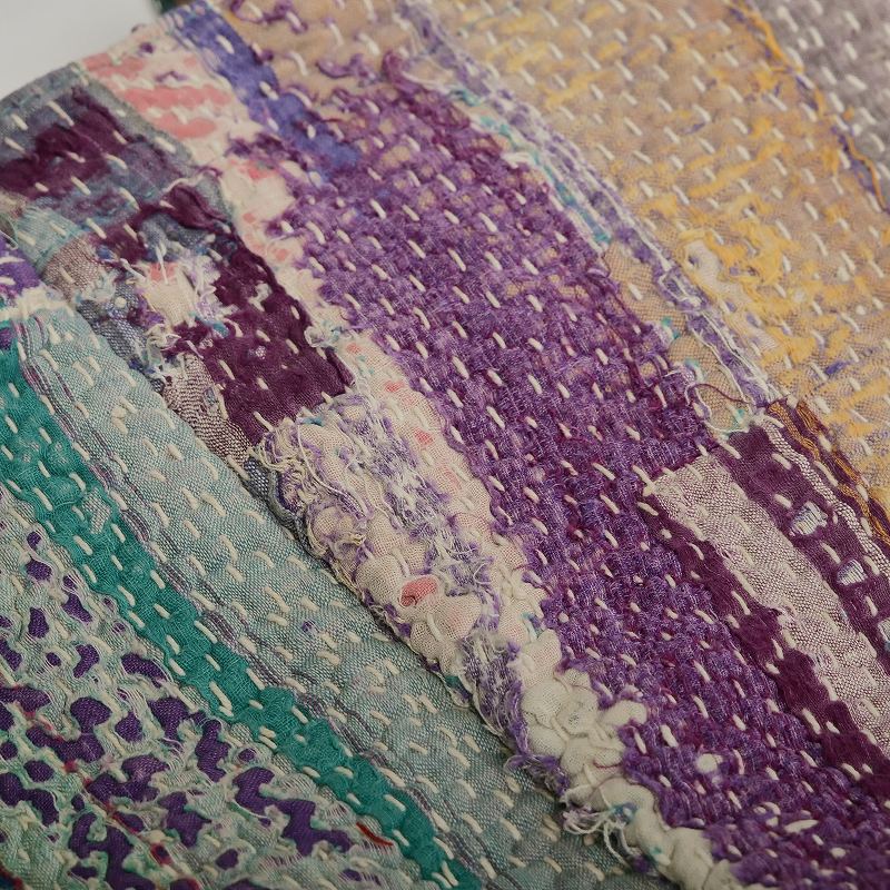 通常のグドゥリー商品と違い、摩耗して刺し子部分の凹凸が際立っていたり、生地部分が薄くなったり破れて下に重ねた生地が見えていて、独特の風合いがあります。