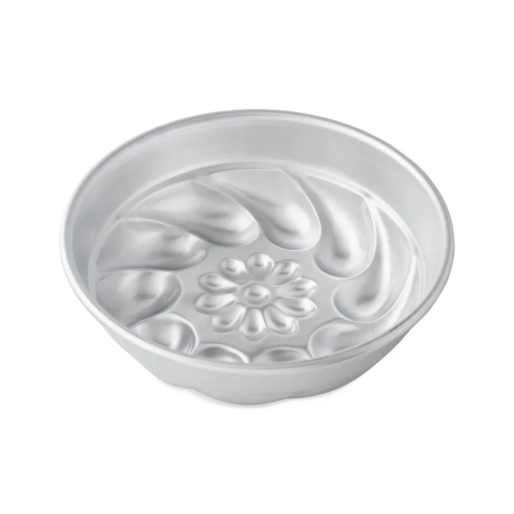 100年続く、老舗のアルミニウムキッチングッズメーカー、オッティネッティ社がつくる、 ケーキ型です。 1920年にイタロ・オッティネッティがヴェルバーニアにあるマッジョーレ湖畔に会社を設立し、100年以上たった今日でも同じ場所で主にアルミニウムを中心に、業務用から家庭用まで幅広い製品を提供しています。 「渦巻きケーキ型」は渦巻きのモチーフがほどこされています。 ケーキの他にプリンやババロアを作るのもおすすめです。 アルミニウムは取り扱いに気を使う素材ではありますが、熱伝導性に優れ、多用途で無限にリサイクルできる、環境にもやさしい素材です。 アンティークケーキ型のような、どこか懐かしい雰囲気のあるケーキ型を使って、オリジナルケーキを作ってみてください。