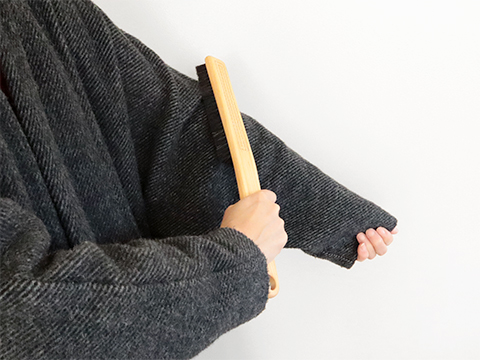 「洋服ブラシ」は、毛足が短く角度のついた長いハンドルなので、手の届きにくい部分も服を着たままブラッシングすることができます。