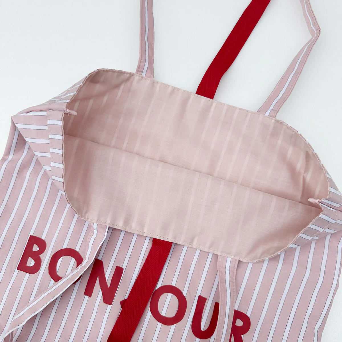 明るいストライプ柄が夏らしく爽やかな印象のバッグです。