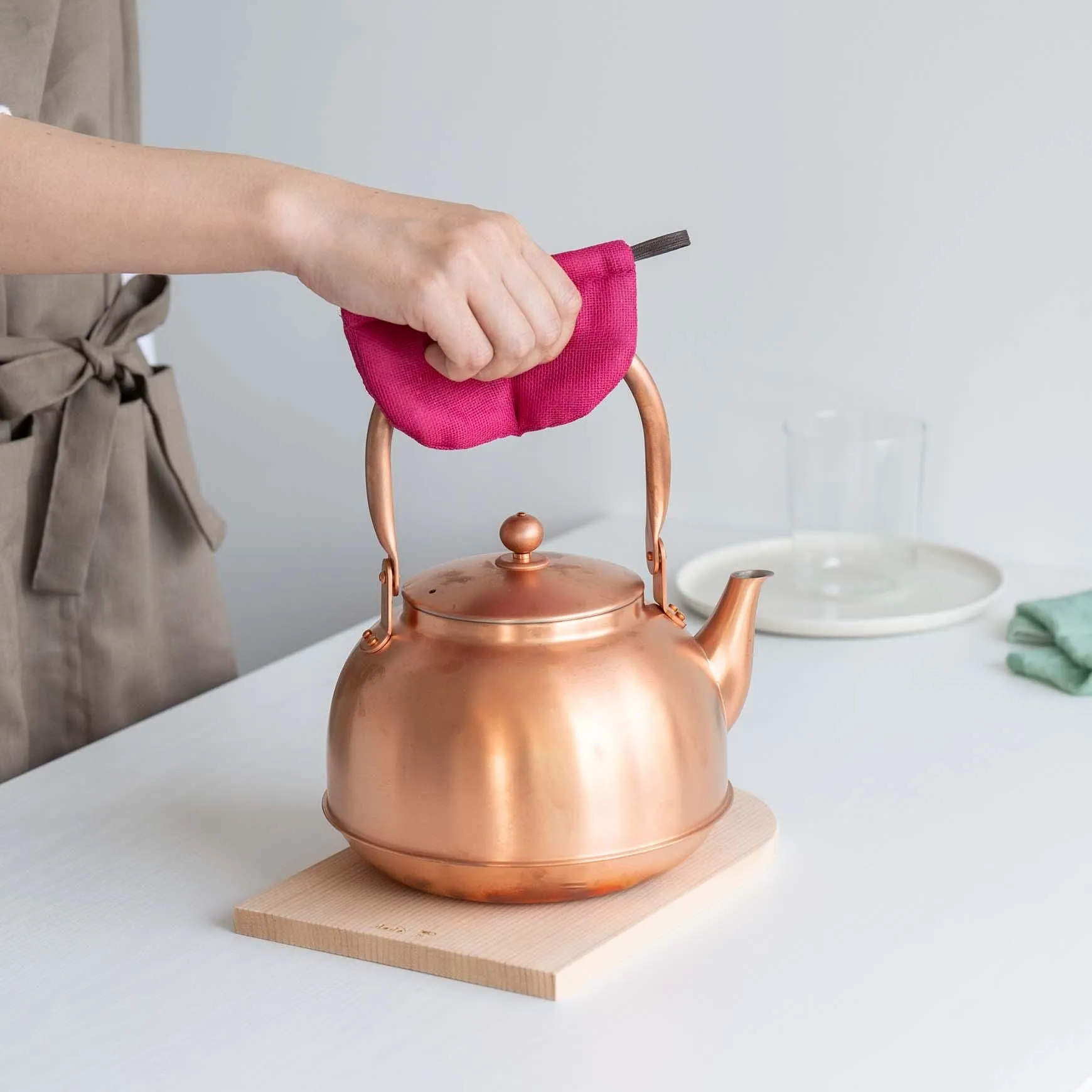 綿100%、奈良県の蚊帳生地を使った、オリジナルの鍋つかみができました。