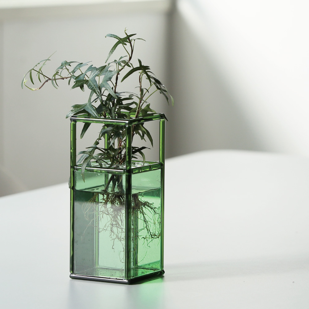 透明感のあるガラスは、花や葉の美しさを際立たせ、光を美しく透過します。