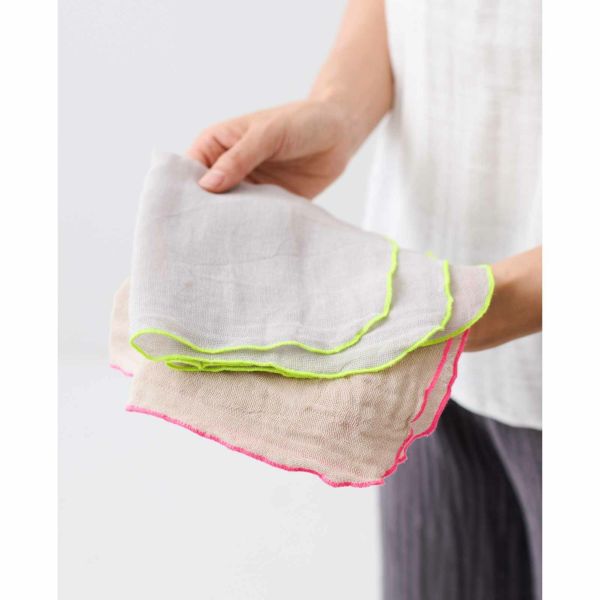 chabbit かやふちどりハンカチ かやふちどりハンカチ カラフルな「ふちどり」で彩る蚊帳のハンカチです。 【デザイン】 ・ふちどり仕立てで縫い代がなく、畳んでもスッキリと収納できます ・ハンカチの四方の角は丸く縁取り、やわらかな印象に 【素材】 洗うほどに柔らかくなる綿100%の蚊帳2枚重ね 約37×37cm 550yen 2025-06-05 by chabbit chabbit < ポストカード 蚊帳お台ふき >