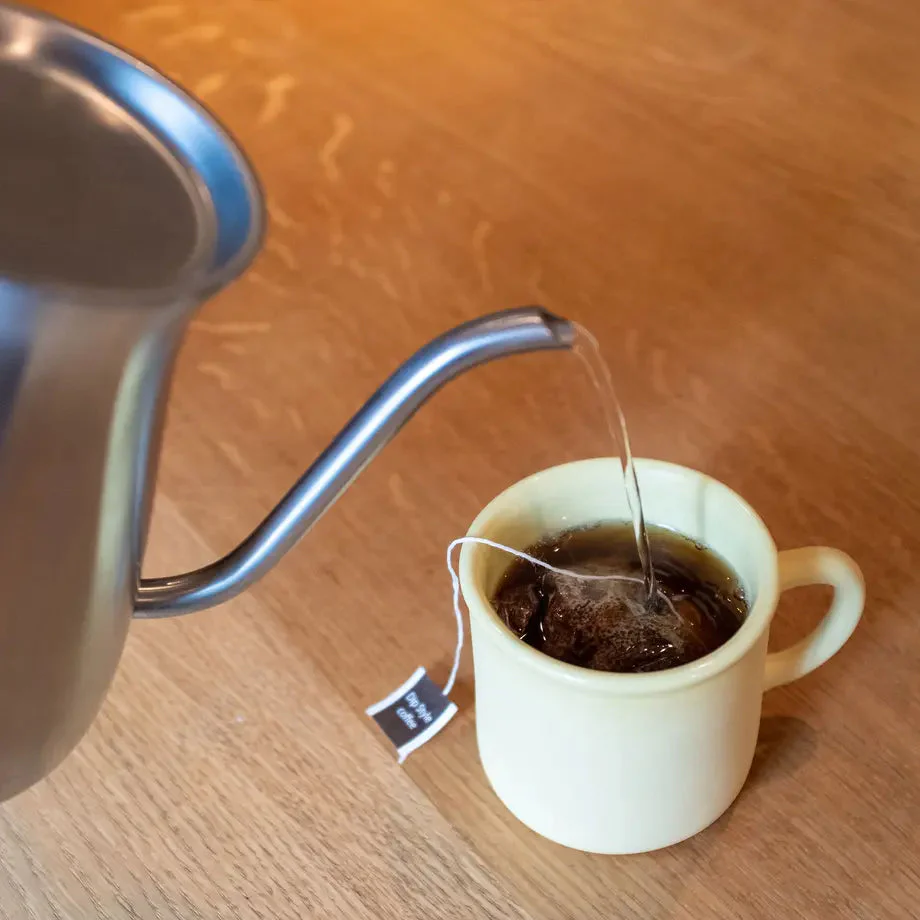 ディップバッグコーヒーを使えば、ティーバッグのようにお湯を注ぐだけで美味しいコーヒーが出来上がります。 必要なものはカップとお湯だけ。 いつでも、どこでも、どなたでも美味しいコーヒーが簡単に作れます。