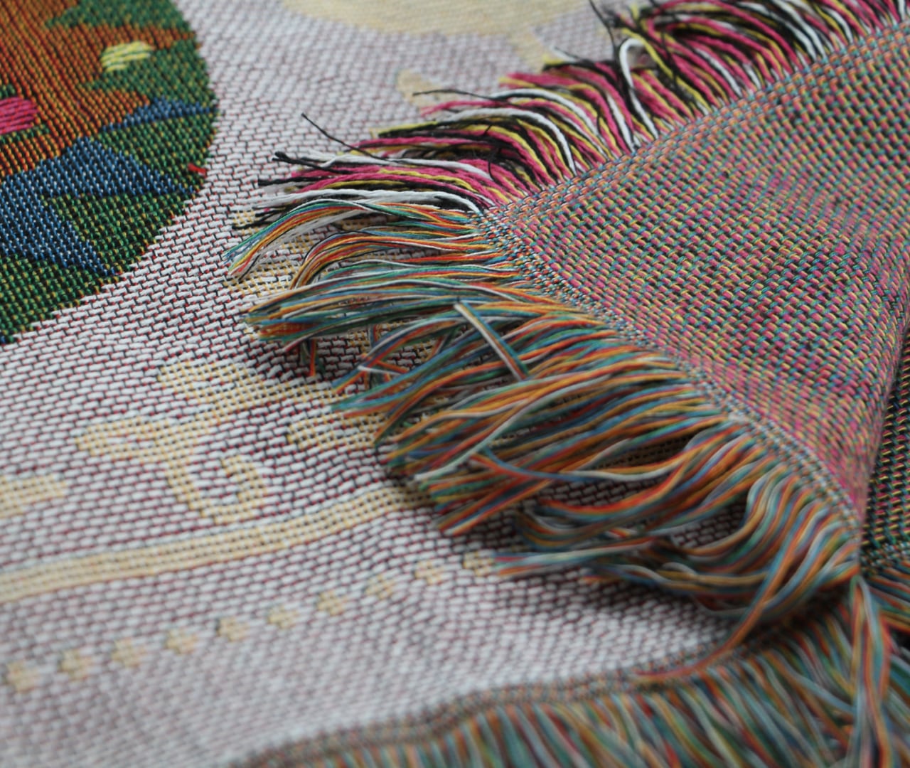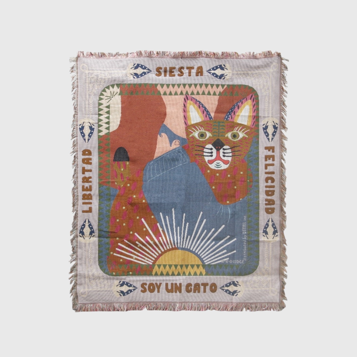 以前のタイプに比べてメキシコらしい明るい色が強調された配色となり、生地も80gほど増えたことでしっかりとした生地感と、装いも新たに生まれ変わりました。ソファやベッドにさらりと掛けて、肩から羽織れる大判サイズは膝掛けとして、鮮やかな色合いを活かしてタペストリーのように壁面アートとしてなど、様々なシーンでお部屋を彩ってくれます。