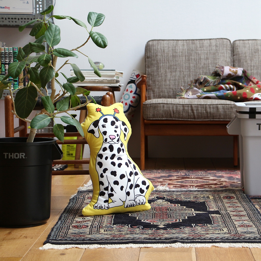 日々を楽しんでいるペット達をテーマにした、イラストレーターMIDORI KOMATSUデザインのクッション。