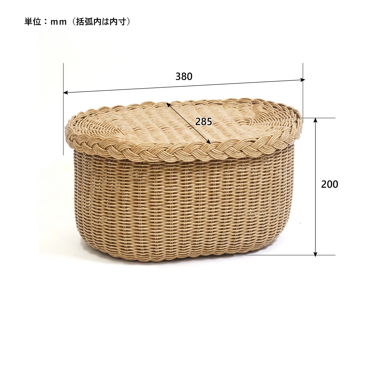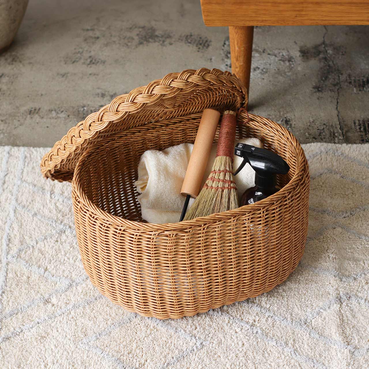 PPラタンで編み上げたオーバル型のバスケット。