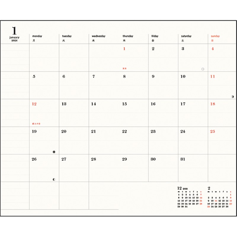 今最も注目されている絵本作家、ミロコマチコのアートを表紙に、中面はシンプルに仕上げたマンスリーダイアリーです。