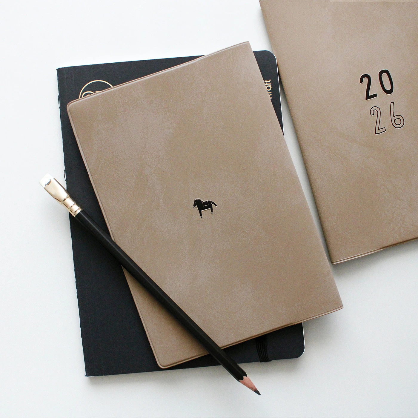 ずっと触っていたくなるマットでサラサラした手触りの表紙、手書きの年号がシンプルでカワイイです。