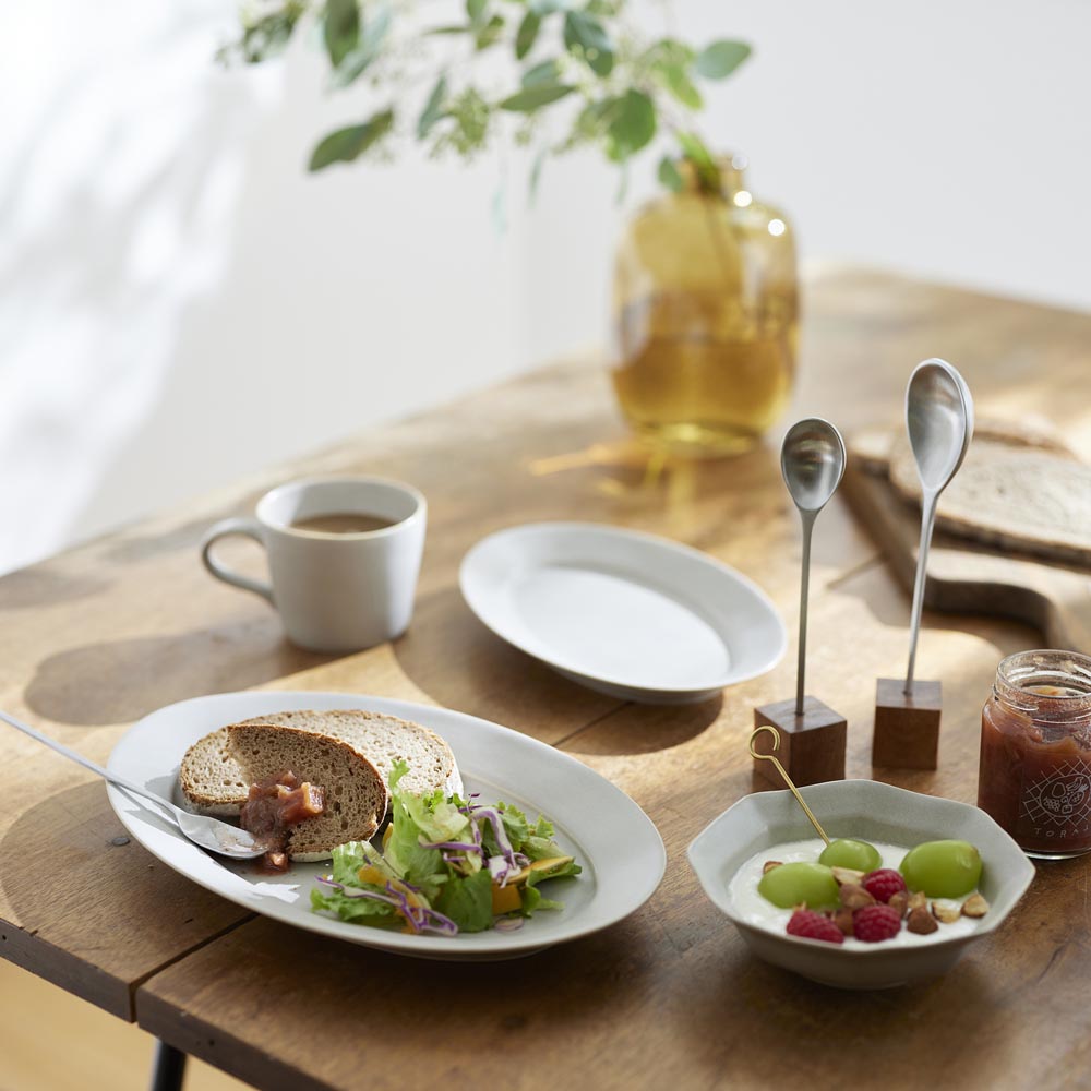 和・洋どちらのお料理やデザートも引き立ててくグレーカラーです。