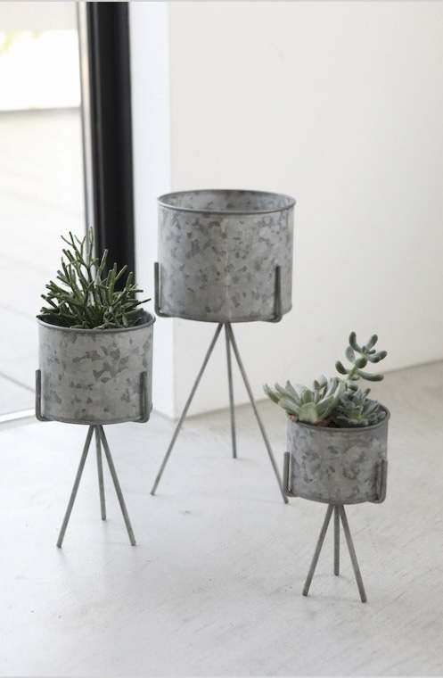 3本脚のミニマルなフォルムが、植物の存在感を引き立てます。