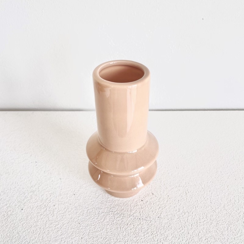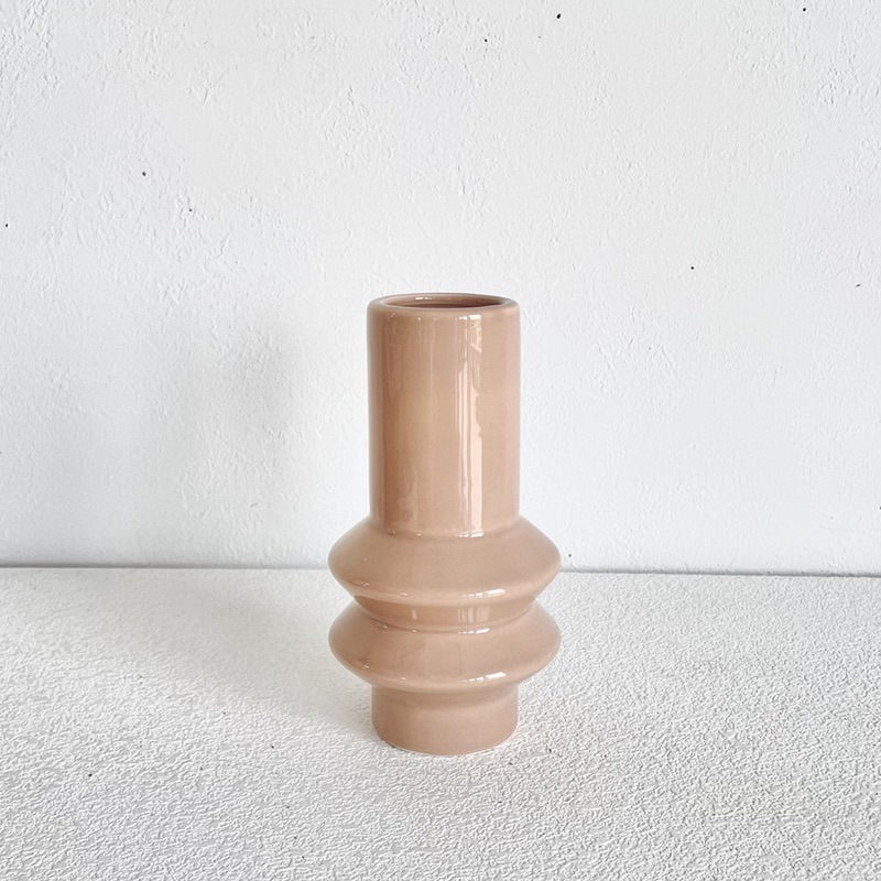 やわらかなピンクベージュ色が上品に空間を彩る花器です。