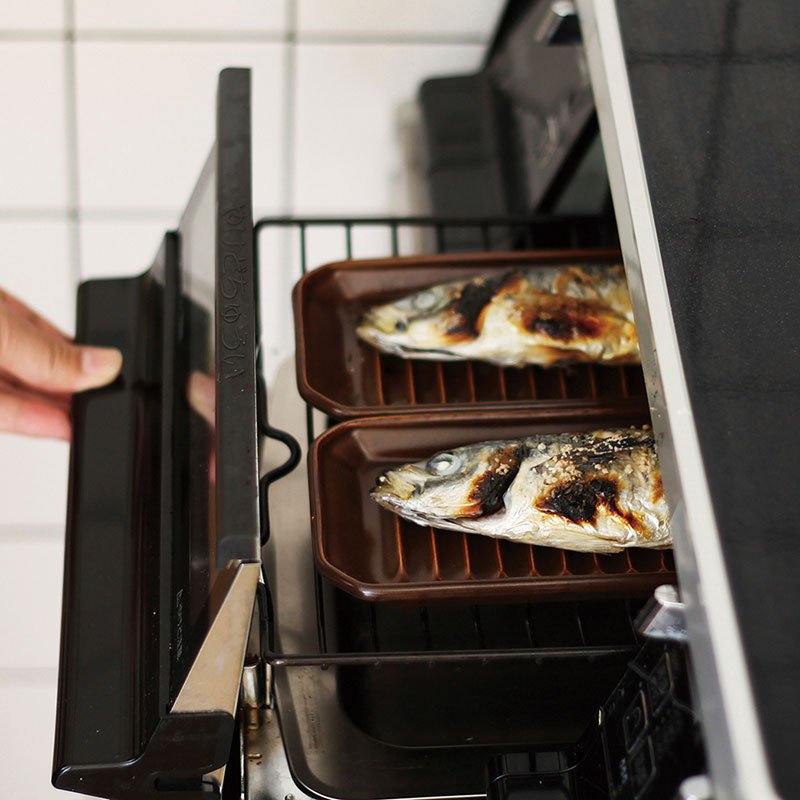 掃除がしにくい魚焼きグリルの網とトレイも、グリルプレートを使うと汚れにくくなるため、片付けの手間が省けます。