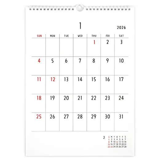 リング綴じ 活版印刷 13枚つづり 日曜始まり