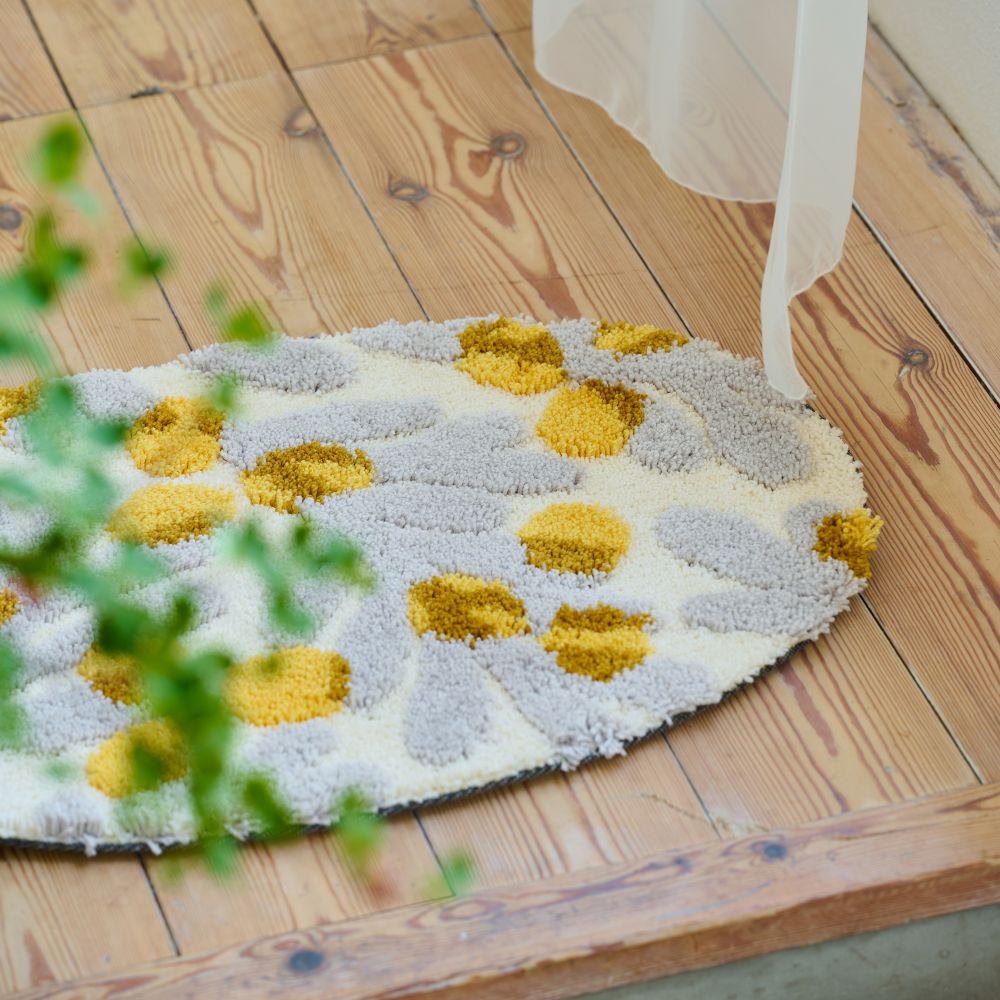 たっぷりと糸を使ったふかふかの表面は、足元にやさしい踏み心地。