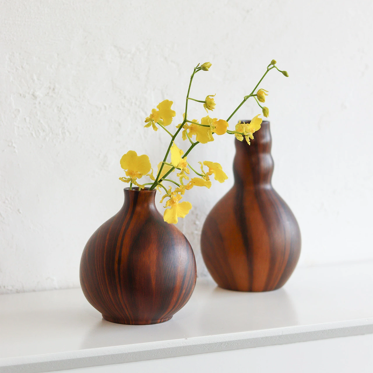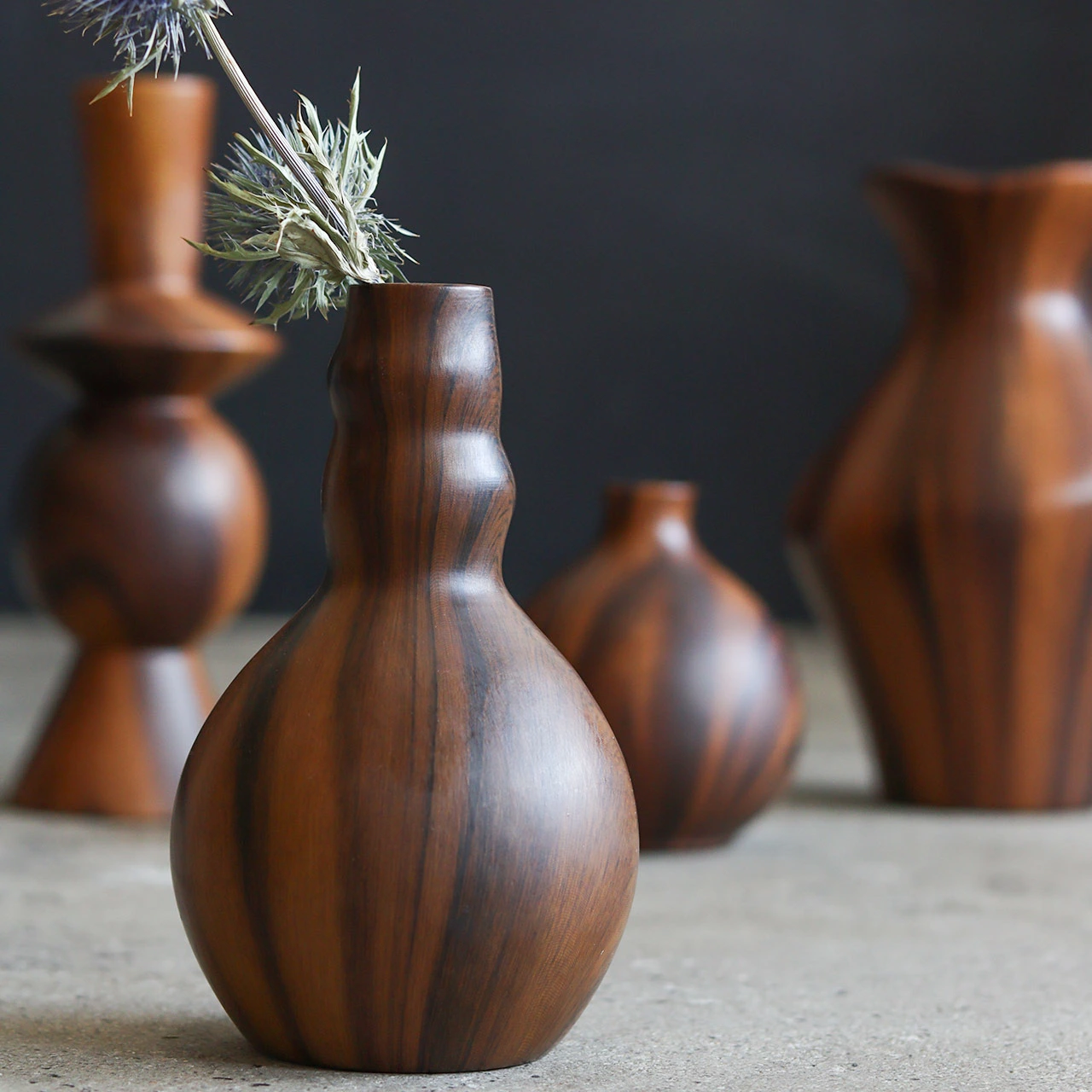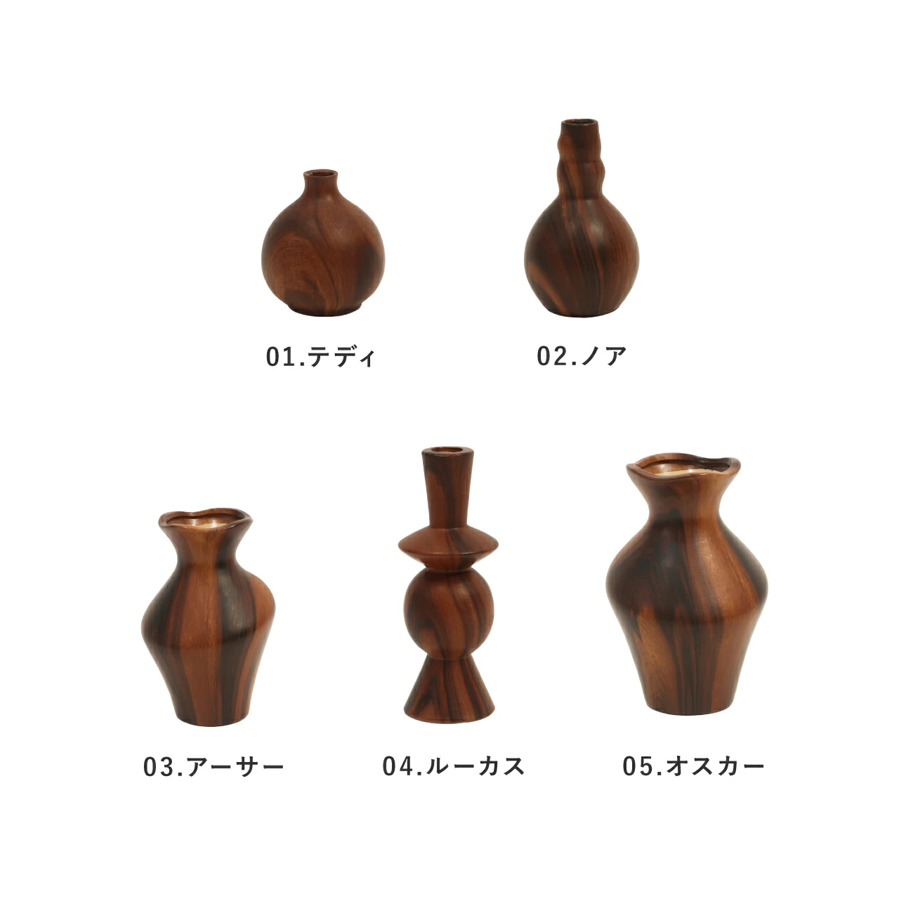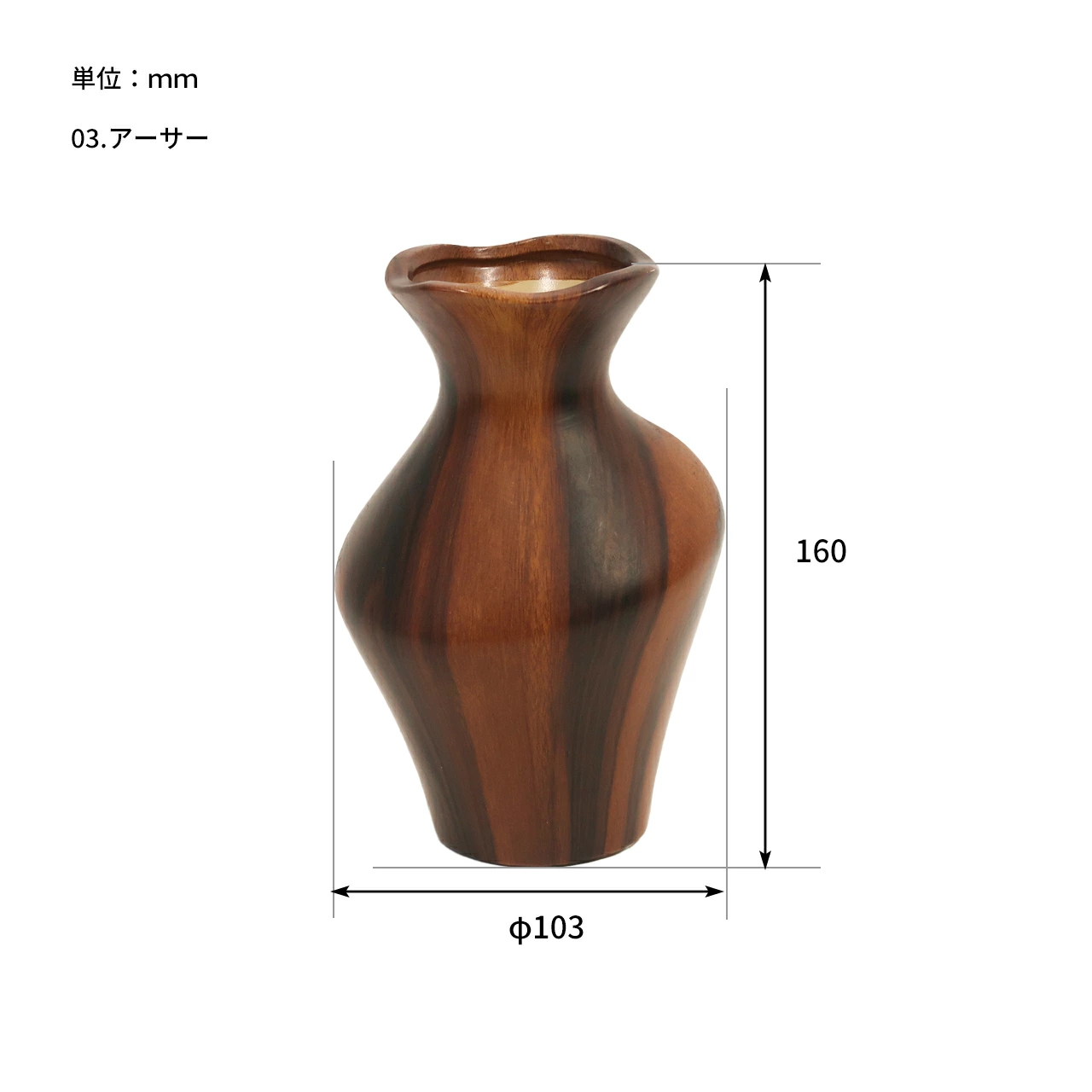 木のぬくもりを感じさせる、陶器製のフラワーベース。 本物の木のように見える美しい木目は、特殊な転写技術によって丁寧に施されており、 陶器でありながら自然素材のような温かみを感じさせます。 手に取るとひんやりとした質感ながら、見た目にはやさしい印象で、和洋問わずさまざまな空間に調和。 落ち着いた色味の木目模様が、空間にやさしい陰影を生み出します。 異なる形を組み合わせて並べても、一つで飾っても絵になるデザインです。