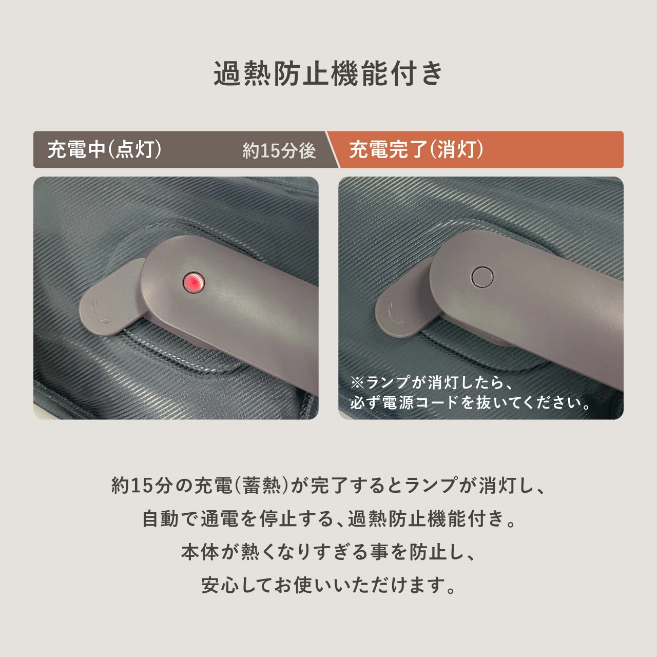 この湯たんぽはお湯の交換が不要な電気式(蓄熱式)タイプ。