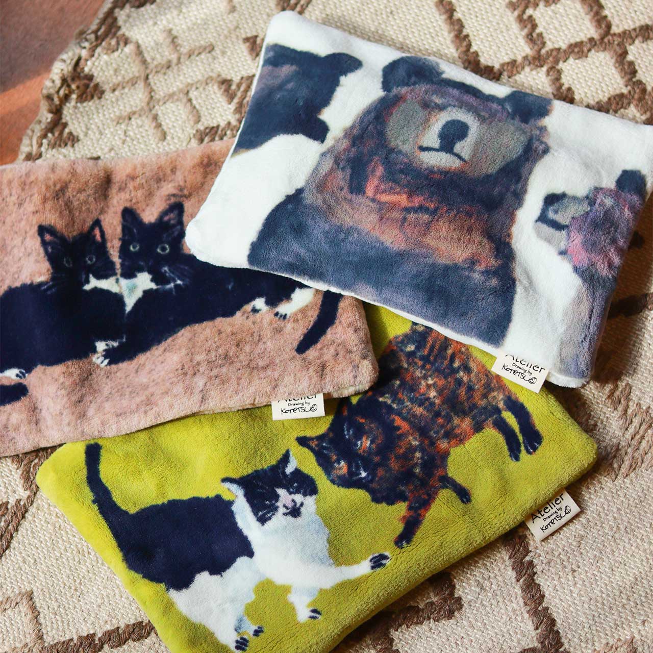 色鮮やかで生き生きとした動物たちのイラストが特徴のフリース湯たんぽ。