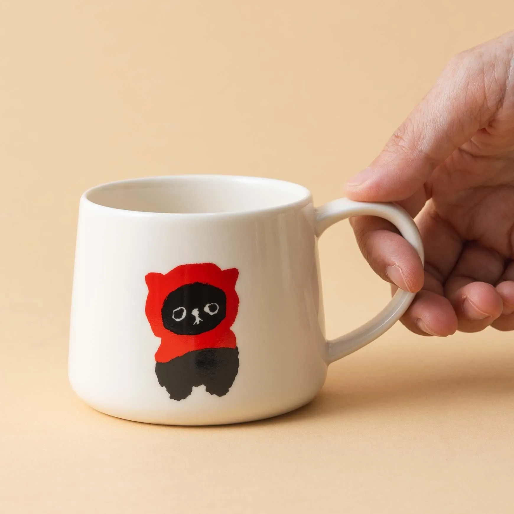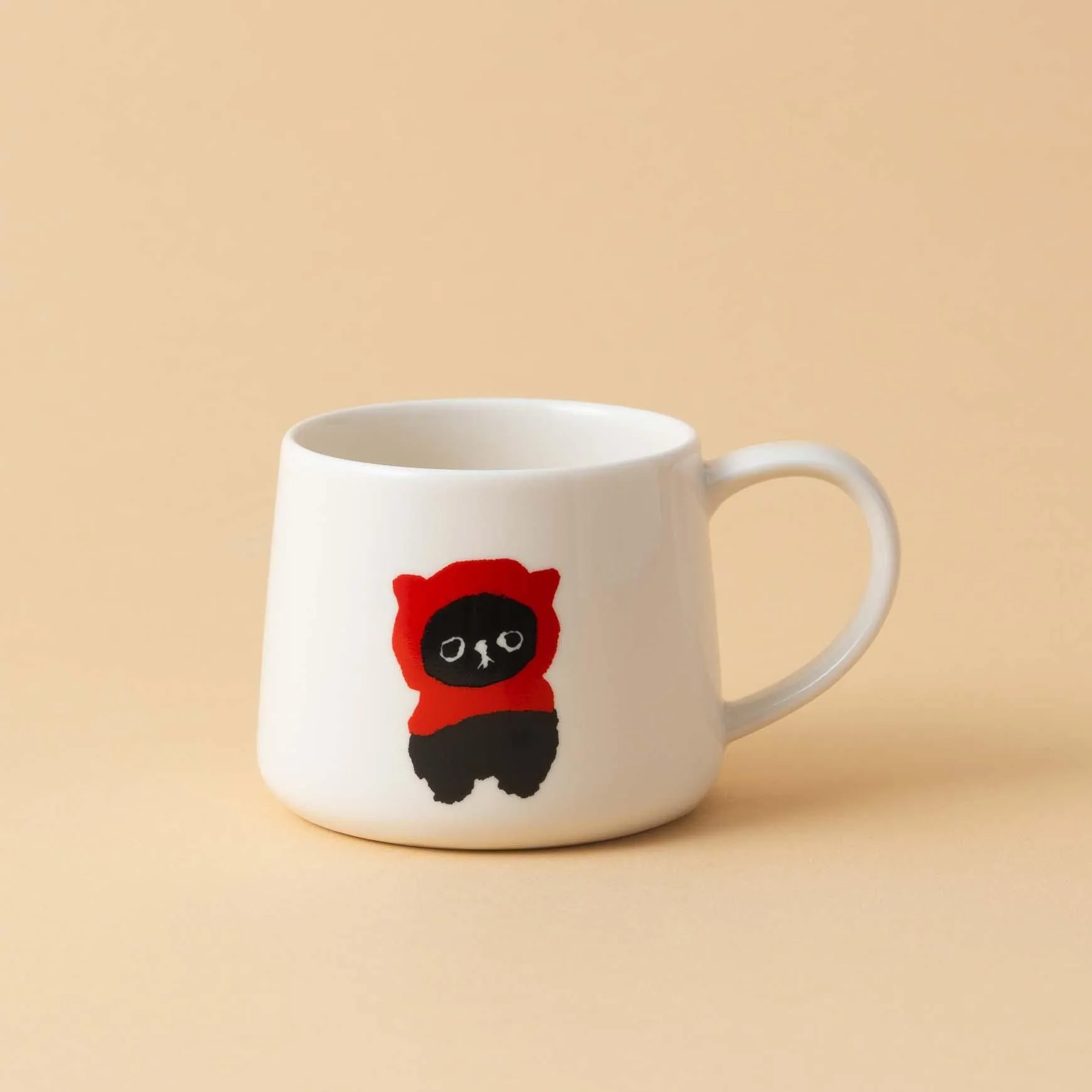B.B. が、真っ赤なフードをかぶってちょこんと座っています。