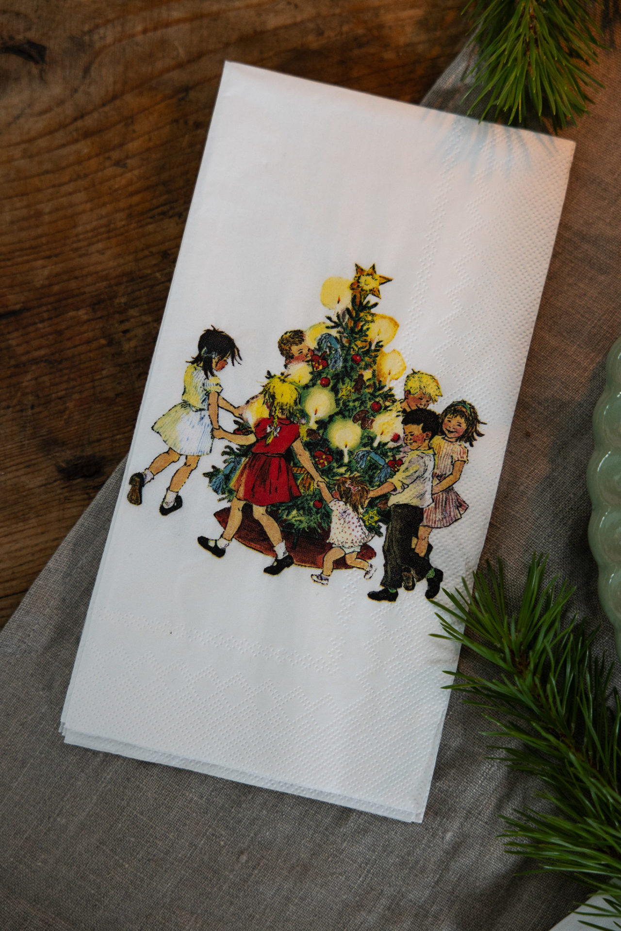 ノイジービレッジの子供たちのイラストと紙ナプキン。