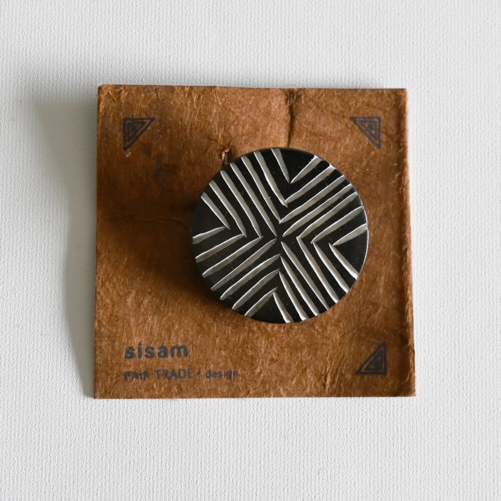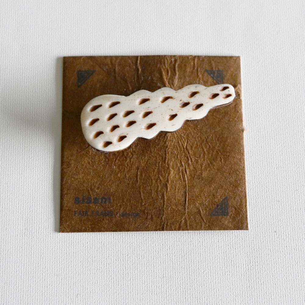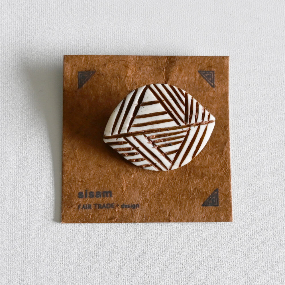 ネパールの職人が、一つ一つ彫り上げた牛骨のブローチ。