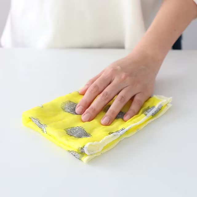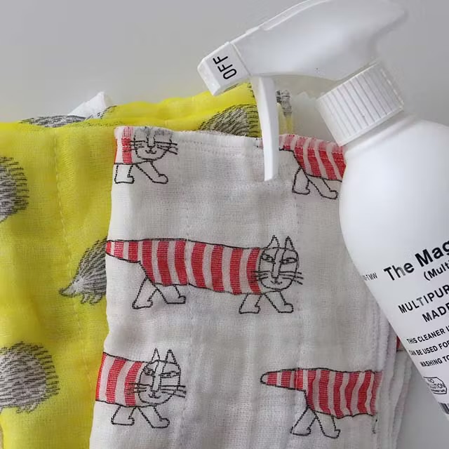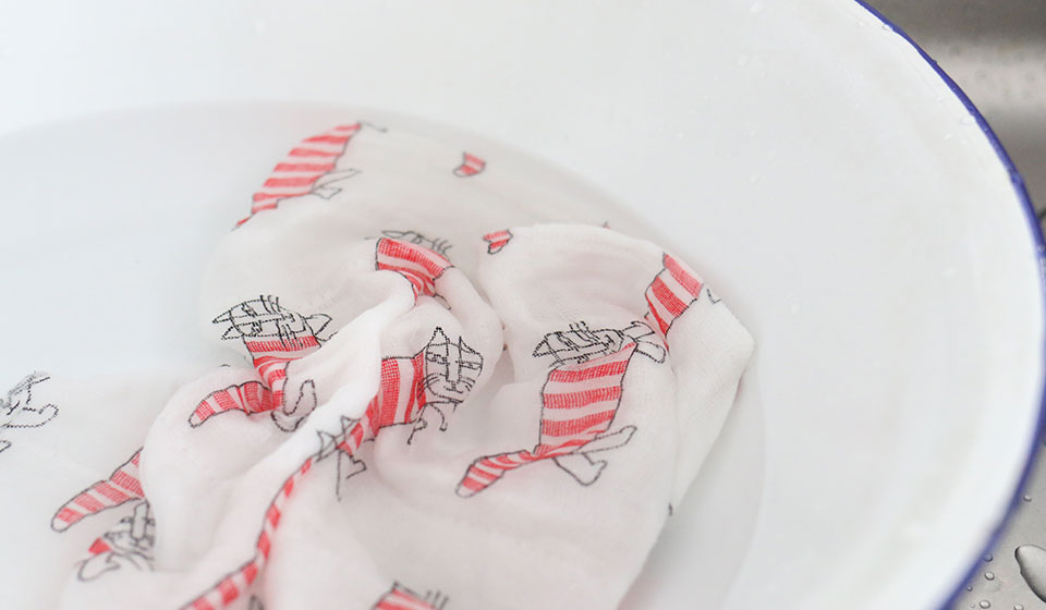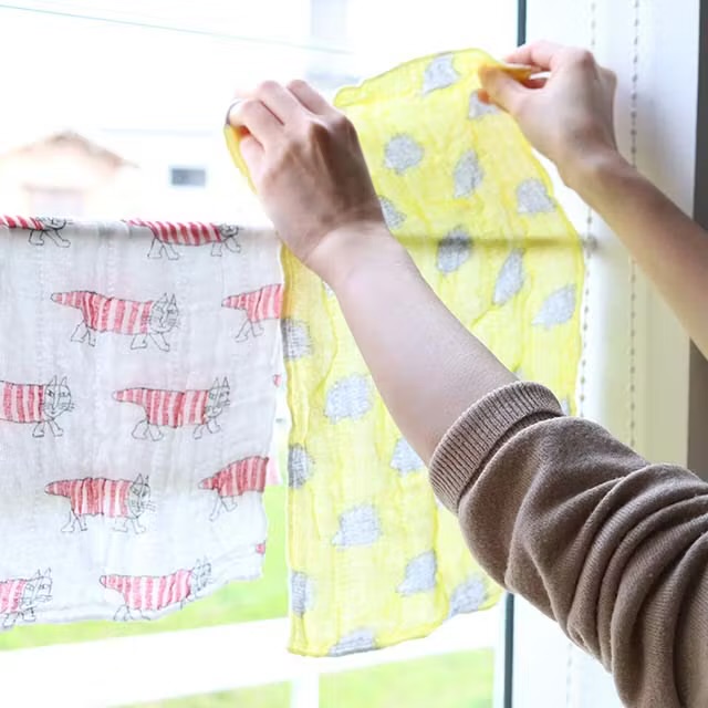 奈良の特産品である蚊帳生地。生活様式の変化によって需要が減少した蚊帳生地をなんとかものづくりに活かしたいという思いから作られた機能的な「ふきん」です。