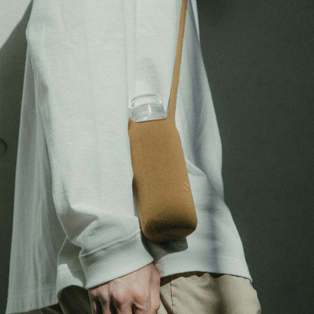 斜め掛けにして、ボトルを持ち運べるスリングバッグ。WATER BOTTLE 500mlにぴったりフィット。スマートフォンや小物を入れるのにもちょうど良いサイズです。
