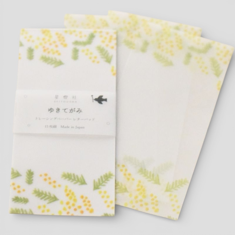 chabbit ゆきてがみ ゆきてがみ 『花ごもり』『ミモザ』 透け感が楽しめる、トレーシングレターパッド。 130mm×60mm / 同柄15枚綴り 440yen 2026-01-23 by chabbit chabbit stationery < ブロックメモ帖 お箸 >