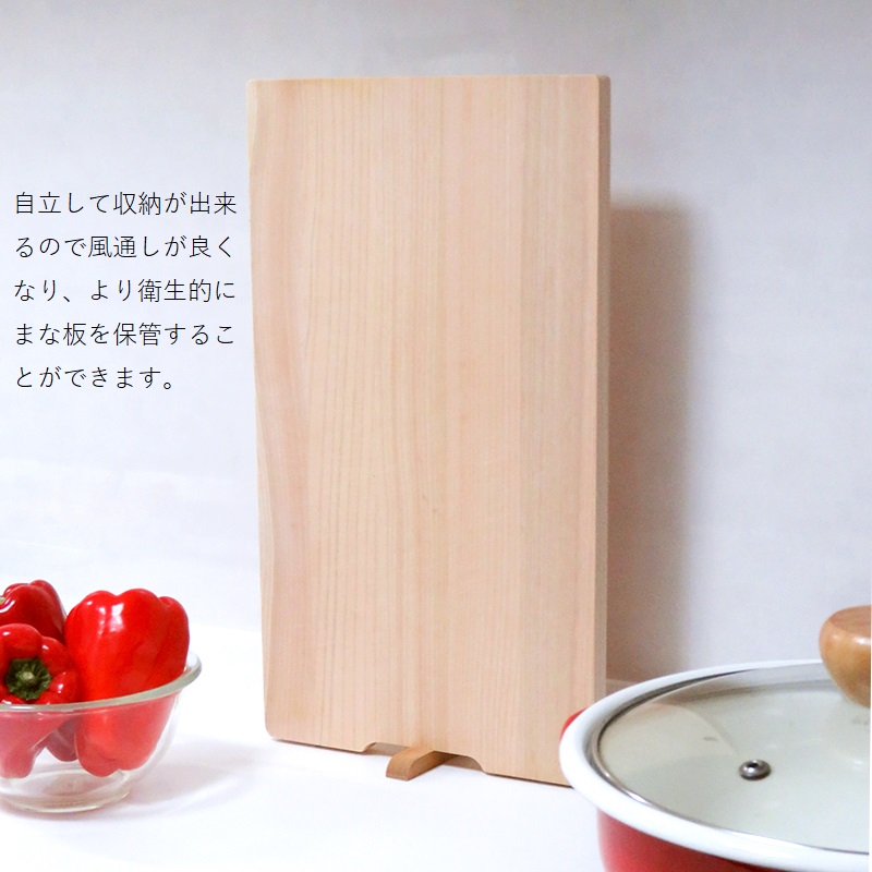 四万十ひのき柾目の集合材を使用したスタンド付きまな板は、材質