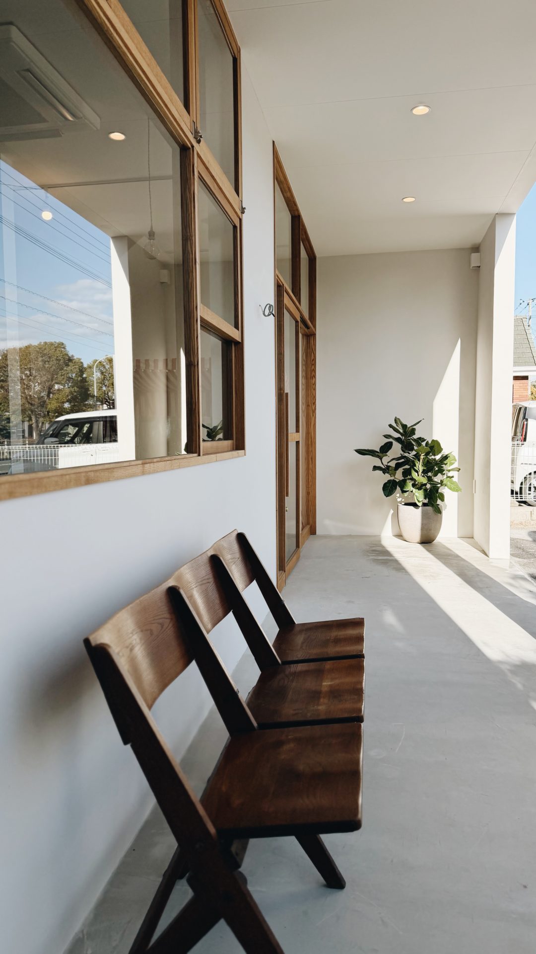 自宅の玄関に置いていた古い椅子がここにピッタリで、やっと活躍する時が来た!って感じです。