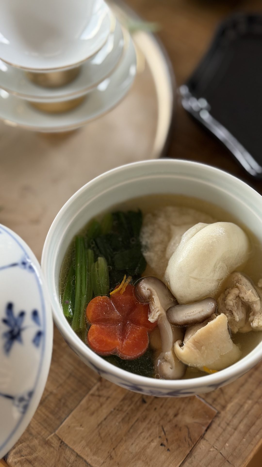 ダイアモンド富士を携帯の写真に収めたら、おせちやお雑煮の準備をします。
